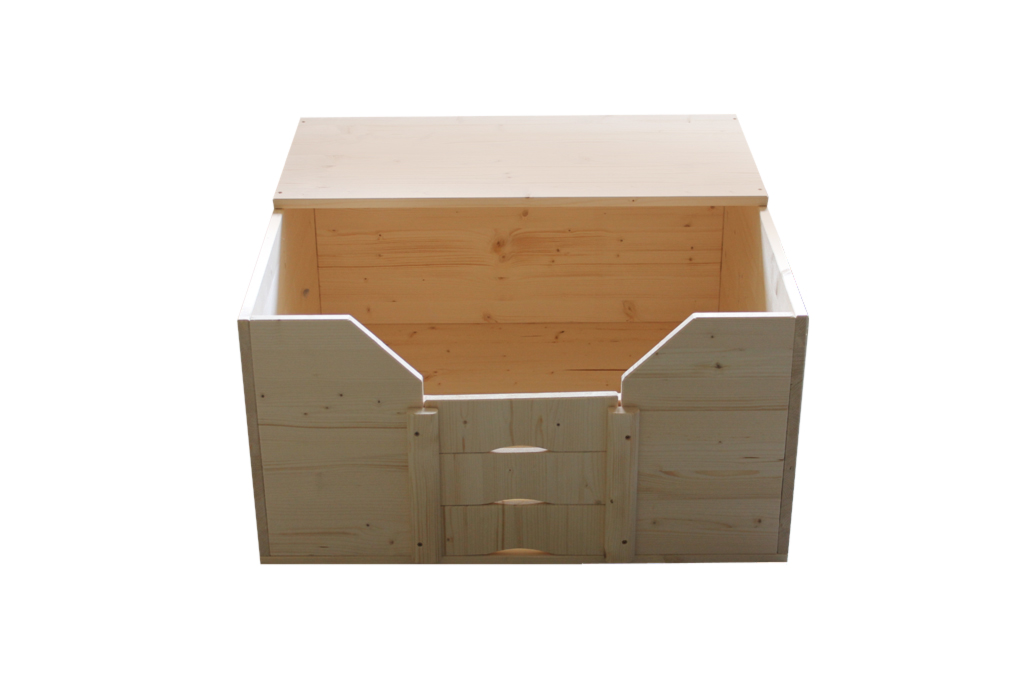 mit zusätzlicher Abdeckplatte als praktische Ablage und „Höhlen-Feeling“ für die Welpen.